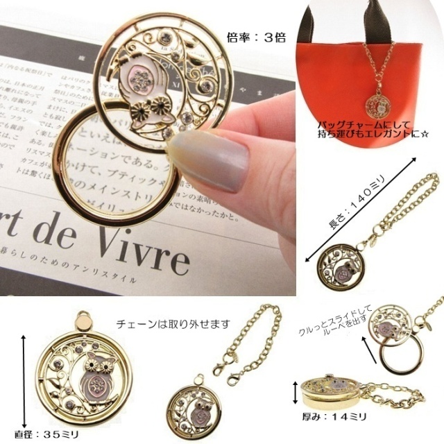 トップページルーペ ペンダントルーペ おめかしルーペ 月とフクロウ [倍率3][新着][母の日] 価格: ¥3,190 (税込) 販売期間: 数量: 個 現在庫数 在庫あり 返品についての詳細はこちら 便利なルーペがおしゃれに「おめかし」 チャームにすればバッグも「おめかし」 素敵なルーペを使ってあなた自身も「おめかし」 繊細で上品なすかし模様で、困ったときにサッとエレガントに使えるルーペです♪ ■生産国 CHINA■寸法(本体) W35×H140×D14ミリ レンズ径:28ミリ■素材 レンズ:ガラス,枠・チェーン:合金,真鍮,鉄,樹脂■重量(g) 58■倍率 3倍■その他仕様 スライド式 管理番号010748 お勧めアイテム ブレストルーペRF‐3 ネコ ブロンズ [倍率3.5][母の日] ¥7,480(税込) ブレストルーペEG‐10 オニキス ゴールド [倍率3.5] ¥6,380(税込) 在庫切れ ブレストルーペEW‐1 シルバー [倍率3.5][母の日] ¥8,800(税込) ブレストルーペEW‐10 ガーネット シルバー [倍率3.5] ¥6,380(税込) ブレストルーペEG‐3 ゴールド [倍率3.5] ¥8,800(税込) ブレストルーペEW‐3 シルバー [倍率3.5][母の日] ¥8,800(税込) ブレストルーペRF‐5 ふくろう ブロンズ [倍率3.5][母の日] ¥7,480(税込)