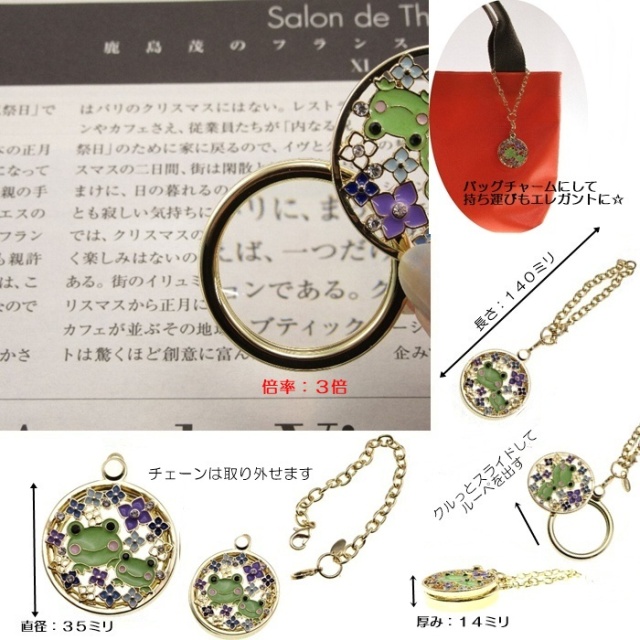 トップページルーペ ペンダントルーペ おめかしルーペ カエルとあじさい [倍率3][新着][母の日] 価格: ¥3,190 (税込) 販売期間: 数量: 個 現在庫数 在庫あり 返品についての詳細はこちら 便利なルーペがおしゃれに「おめかし」 チャームにすればバッグも「おめかし」 素敵なルーペを使ってあなた自身も「おめかし」 繊細で上品なすかし模様で、困ったときにサッとエレガントに使えるルーペです♪ ■生産国 CHINA■寸法(本体) W35×H140×D14ミリ レンズ径:28ミリ■素材 レンズ:ガラス,枠・チェーン:合金,真鍮,鉄,樹脂■重量(g) 58■倍率 3倍■その他仕様 スライド式 管理番号010752 お勧めアイテム エッシェンバッハのeasy POCKET イージーポケット クロ [倍率3][エッシェンバッハ ESCHENBACH][母の日] ¥10,560(税込) エッシェンバッハのeasy POCKET イージーポケット シルバー [倍率3][エッシェンバッハ ESCHENBACH][母の日] ¥10,560(税込) エッシェンバッハのeasy POCKET メタリックブルー 1521-22 [倍率4][エッシェンバッハ ESCHENBACH] ¥13,310(税込) [アウトレット]カードルーペ9625 レッド [倍率1.8][母の日] ¥990(税込) [アウトレット]カードルーペ9625 D.ブルー [倍率1.8][母の日] ¥990(税込)