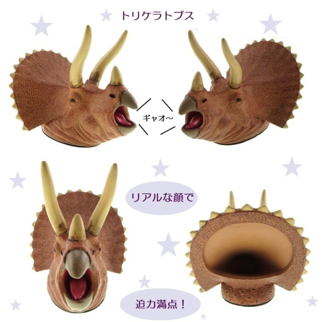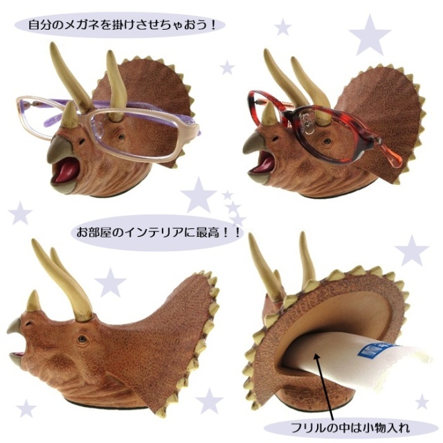トップページメガネケース スタンド メガネスタンド トリケラトプス SR-4082[新着] 価格: ¥2,200 (税込) 販売期間: 数量: 個 現在庫数 在庫あり 返品についての詳細はこちら 恐竜のメガネスタンド☆ トリケラトプスの顔がリアルで迫力満点!メガネを掛けさせて保管ができます。 フリルの下には小物を入れることができます。お部屋のインテリアにいかがですか? ■生産国 CHINA■寸法(本体) 外寸:W100×D130×H100ミリ ■素材 ポリレジン■重量(g) 362■ご注意 メガネやサングラスの形状、大きさにより置くことのできない場合があります。 管理番号010753