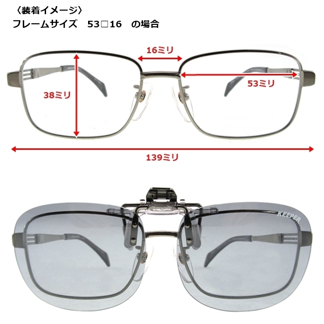 トップページサングラス CLIP ON キーパー(はね上げ)ライトスモーク偏光9311-08[サングラス] 価格: ¥3,850 (税込) 販売期間: 数量: 個 現在庫数 在庫あり 返品についての詳細はこちら お手持ちのめがねがワンタッチでサングラスに変身☆偏光度99%以上で邪魔なギラツキ、写り込み、反射などのまぶしさをしっかりカットします。スタイリッシュなデザインで、フルシーズン日常の様々な用途で活躍します! ■生産国 日本■寸法(本体) レンズ径:58-48-132■素材 レンズ:プラスチック(ハードコート) レンズ枠:ニッケル合金■重量(g) 10■その他仕様 偏光度:99.97%可視光線透過率:39%UVカット■付属品 偏光機能チェックシート専用ケース■ご注意 トンネル内や暗いところでのご使用は視力が低下して危険ですので、はね上げるか使用をおやめください。 管理番号410052
