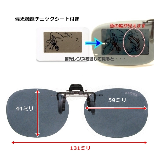 トップページサングラス CLIP ON キーパー(はね上げ)スモーク偏光9320-02[サングラス] 価格: ¥3,850 (税込) 販売期間: 数量: 個 現在庫数 在庫あり 返品についての詳細はこちら お手持ちのめがねがワンタッチでサングラスに変身☆偏光度99%以上で邪魔なギラツキ、写り込み、反射などのまぶしさをしっかりカットします。スタイリッシュなデザインで、フルシーズン日常の様々な用途で活躍します! ■生産国 日本■寸法(本体) レンズ径:59-44-131■素材 レンズ:プラスチック(ハードコート) レンズ枠:ニッケル合金■重量(g) 10■その他仕様 偏光度:99.94%可視光線透過率:18%UVカット■付属品 偏光機能チェックシート専用ケース■ご注意 トンネル内や暗いところでのご使用は視力が低下して危険ですので、はね上げるか使用をおやめください。 管理番号410054