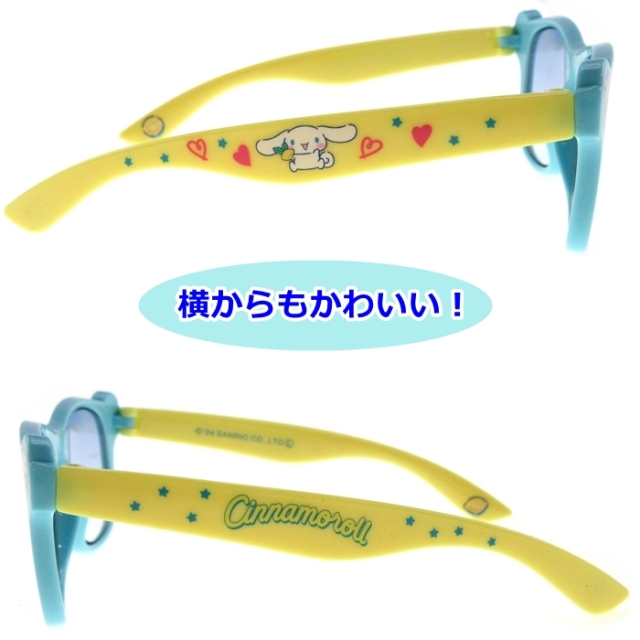 トップページサングラス 子供用 サンリオ キッズサングラス7280-31 シナモロール[サングラス] [サンリオSanrio][新着] 価格: ¥2,200 (税込) 販売期間: 数量: 個 現在庫数 在庫あり 返品についての詳細はこちら サンリオキャラクターのキッズサングラスカラフルでかわいらしさ満点!お子様の紫外線対策に!対象:幼稚園~小学校低学年のお子様 ■生産国 中国■寸法(本体) フレーム幅:120ミリ 高さ:43ミリ レンズ径:44ミリ 天地幅:37ミリ■素材 レンズ:アクリル フレーム:ポリカーボネート■その他仕様 フレームカラー:ライトブルー/イエロー ,レンズ:ブルーグラデーション可視光線透過率:21%紫外線透過率:0.1%■付属品 収納ケース 管理番号410060